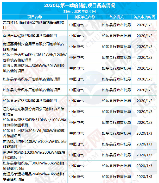值得注意的是,有17個儲能項(xiàng)目于今年1月3日集中通過備案,項(xiàng)目申報單位均來自于中恒電氣、而項(xiàng)目建設(shè)地點(diǎn)均位于南通如東縣,規(guī)模預(yù)計超過5MWh。