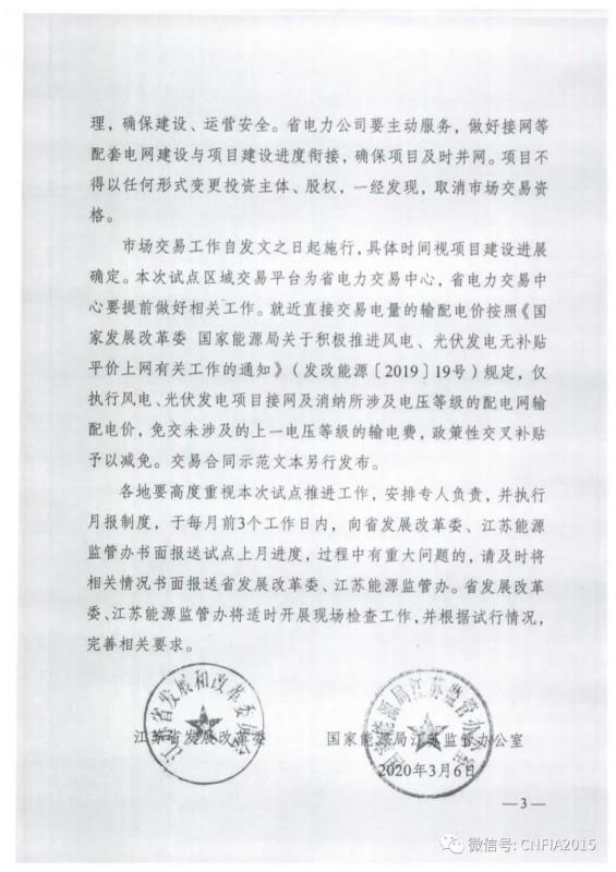 過(guò)網(wǎng)費(fèi)可以說(shuō)是項(xiàng)目能否落地的關(guān)鍵。此次江蘇的試點(diǎn)交易平臺(tái)為省級(jí)電力交易中心,輸配電價(jià)執(zhí)行“風(fēng)光項(xiàng)目接網(wǎng)及消納所涉及電價(jià)等級(jí)的配電網(wǎng)輸配電價(jià),免交未涉及的上一電壓等級(jí)的輸電費(fèi),減免政策性交叉補(bǔ)貼”。