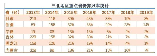 但事實(shí)上,在隨后的幾年內(nèi),三北地區(qū)棄風(fēng)限電問題不僅沒有得到解決,反而全面升級(jí)。到2016年,甘肅省棄風(fēng)率高達(dá)43%,新疆和吉林棄風(fēng)率均超過30%。