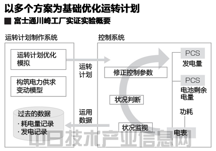 富士通的微電網(wǎng)實(shí)證實(shí)驗(yàn)每小時(shí)修正一次運(yùn)轉(zhuǎn)計(jì)劃,截至2012年12月,已取得了高峰用電量平均削減23%的效果。為了削減高峰用電量,多是采用預(yù)測(cè)當(dāng)天日照量最低值的方法,但現(xiàn)已確認(rèn),采用富士通在實(shí)驗(yàn)中實(shí)施的反復(fù)模擬法,偏差小。