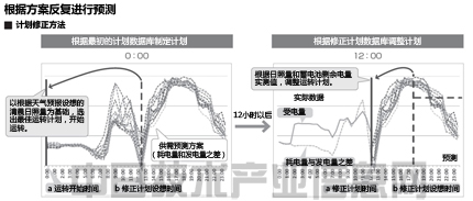 一天內(nèi)可多次通過(guò)這種優(yōu)化模擬進(jìn)行修正控制。首先,根據(jù)天氣預(yù)報(bào)設(shè)想清晨的日照量,以此為基礎(chǔ)設(shè)定最佳運(yùn)轉(zhuǎn)計(jì)劃,并開(kāi)始運(yùn)轉(zhuǎn)。事先確定修正計(jì)劃的時(shí)間。從開(kāi)始運(yùn)轉(zhuǎn)的時(shí)間到預(yù)定修正計(jì)劃的時(shí)間,根據(jù)這段時(shí)間內(nèi)的狀況變化,事先制定多個(gè)可供選擇的運(yùn)轉(zhuǎn)計(jì)劃方案。等到了修正計(jì)劃的時(shí)間,則根據(jù)這時(shí)的日照量及蓄電池的剩余電量,選出最佳運(yùn)轉(zhuǎn)計(jì)劃方案。此時(shí)還將設(shè)定下次修正計(jì)劃的時(shí)間,制定下一個(gè)運(yùn)轉(zhuǎn)計(jì)劃方案。通過(guò)多次調(diào)整計(jì)劃,以取得最大運(yùn)用效果。
