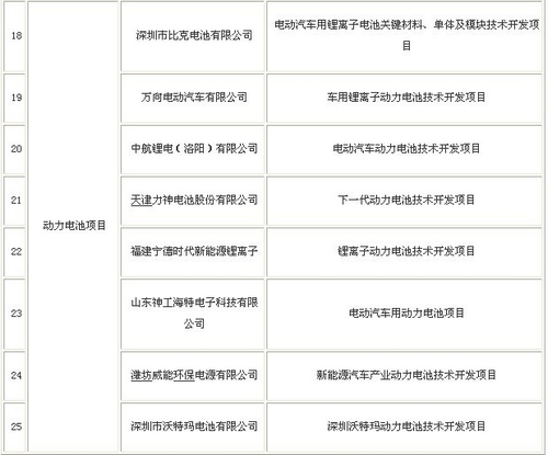 2012新能源汽車產(chǎn)業(yè)技術創(chuàng)新工程動力電池組名單