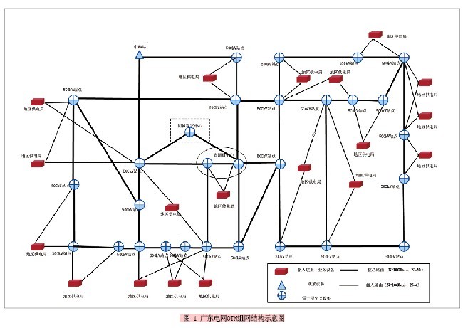 廣東電網(wǎng)OTN骨干層組網(wǎng)應(yīng)結(jié)合地理位置,選擇光纜資源豐富的500kV站點(diǎn)作為骨干層節(jié)點(diǎn),盡量組成MESH網(wǎng)絡(luò),保證骨干層的可靠性,同時(shí)保證非邊緣節(jié)點(diǎn)至少有3條路由。