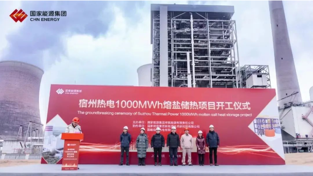 中國(guó)儲(chǔ)能網(wǎng)訊:1月21日上午,“宿州熱電基于熔鹽儲(chǔ)熱的煤電靈活性關(guān)鍵技術(shù)研究及示范應(yīng)用”項(xiàng)目開(kāi)工儀式在國(guó)能宿州熱電有限公司成功舉辦,標(biāo)志著全國(guó)首個(gè)熔鹽儲(chǔ)熱替代電化學(xué)儲(chǔ)能的項(xiàng)目,世界最大煤電機(jī)組耦合熔鹽儲(chǔ)熱項(xiàng)目正式拉開(kāi)建設(shè)序幕。宿州市埇橋區(qū)發(fā)改委、國(guó)家能源集團(tuán)安徽公司、新能源院領(lǐng)導(dǎo)和項(xiàng)目部全體成員一同出席了開(kāi)工儀式。