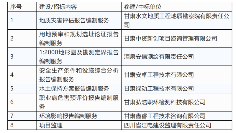 該項目已經(jīng)發(fā)布選址論證報告、占用林地可行性研究報告和占用林地現(xiàn)場查驗報告、安全預(yù)評價報告、地質(zhì)災(zāi)害危險性評估報告、職業(yè)病危害預(yù)評價、洪水影響評價報告、地震安全性評價等詢價采購公告。