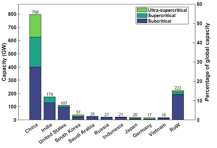 在國(guó)際上有更多的機(jī)會(huì),因?yàn)槿济喊l(fā)電廠的建造時(shí)間較晚,而且還在繼續(xù)建造,尤其是在新興市場(chǎng)和發(fā)展中經(jīng)濟(jì)體國(guó)家。隨著各國(guó)重新評(píng)估燃煤發(fā)電的經(jīng)濟(jì)和環(huán)境影響,安裝新的蒸汽輪機(jī)容量(主要是燃煤發(fā)電廠)的計(jì)劃通常正在縮減。圖4.11顯示了當(dāng)前運(yùn)行電廠安裝基數(shù)最大的10個(gè)國(guó)家到2050年將少于50年的汽輪機(jī)容量。該數(shù)字不包括新工廠的建設(shè)。在目前在新增產(chǎn)能方面領(lǐng)先世界的中國(guó)和印度,大多數(shù)新建和最近建造的燃煤發(fā)電廠或者是超臨界的,或者是超超臨界的,因此具有40%以上的效率。