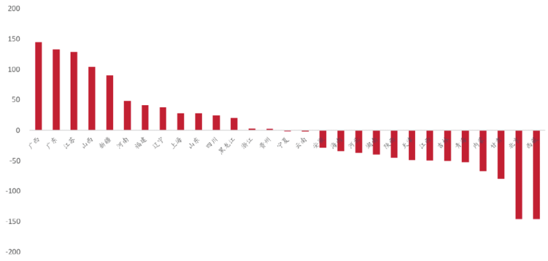 ▲全國各個地區(qū)天然氣供熱與熔鹽儲能供熱成本差(元/噸)