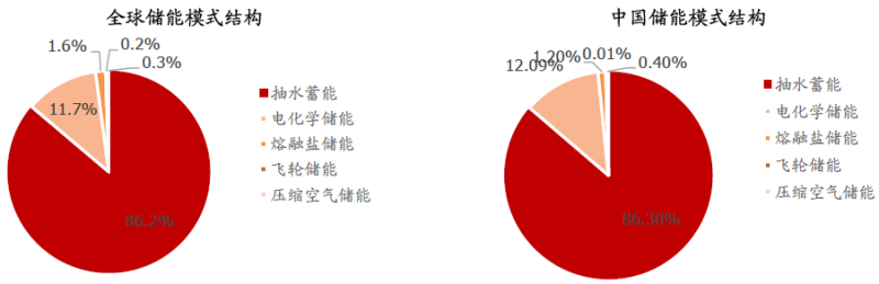 在2021年的全球儲能市場中,抽水蓄能累計(jì)裝機(jī)占比86.2%,電化學(xué)儲能累計(jì)裝機(jī)規(guī)模占比第二,約11.7%,熔鹽儲能的累計(jì)裝機(jī)規(guī)模排名第三,占比1.6%。