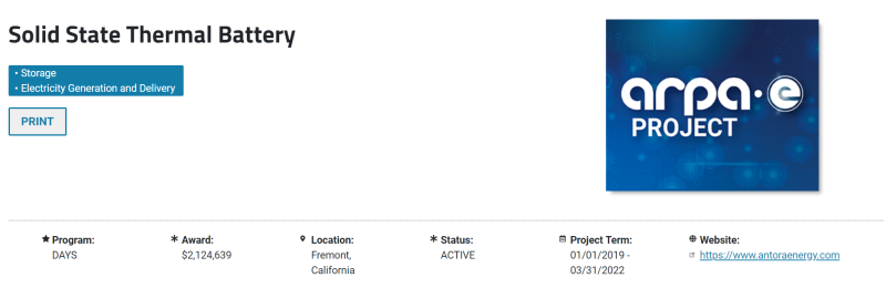 目前,Antora Energy公司500千瓦時樣機已在調(diào)試階段,已完成1000小時成功運行測試。將于2022年在加州Fresno建成投產(chǎn)第一批示范工程。