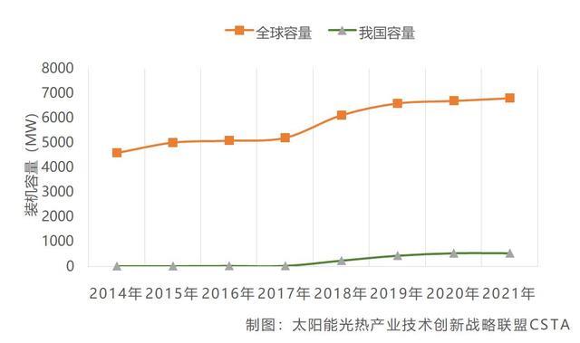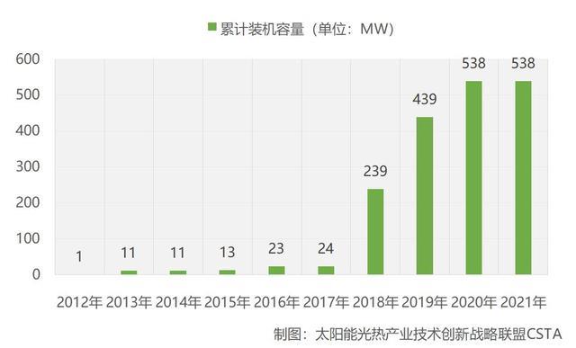 2021年底我國太陽能熱發(fā)電累計裝機容量