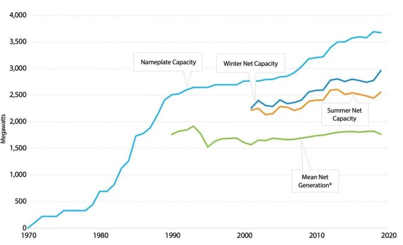 目前美國共有93個地熱發(fā)電站,總裝機容量為3673MW。近年來,美國地熱發(fā)電裝機量增長緩慢,根據(jù)統(tǒng)計,從2015年至2019年期間,美國新增了7個地熱發(fā)電站,總裝機容量186MW,但同期11個地熱電站退役,總裝機容量103MW。