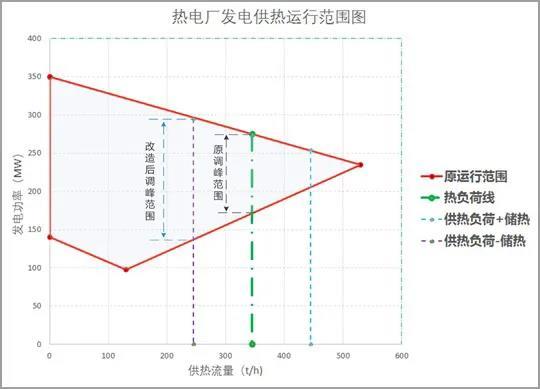 熱儲能調(diào)峰的技術(shù)路線本質(zhì)上是調(diào)節(jié)供熱出力,儲存機組多余熱能。該路線不僅能降低機組最低運行負荷,還能提高高峰負荷時的頂負荷能力,顯著擴展了機組調(diào)峰能力范圍,可獲得完整的調(diào)峰收益。但該技術(shù)路線與電蓄熱供暖調(diào)峰相同,初投資較高,目前落地前景還不明朗。