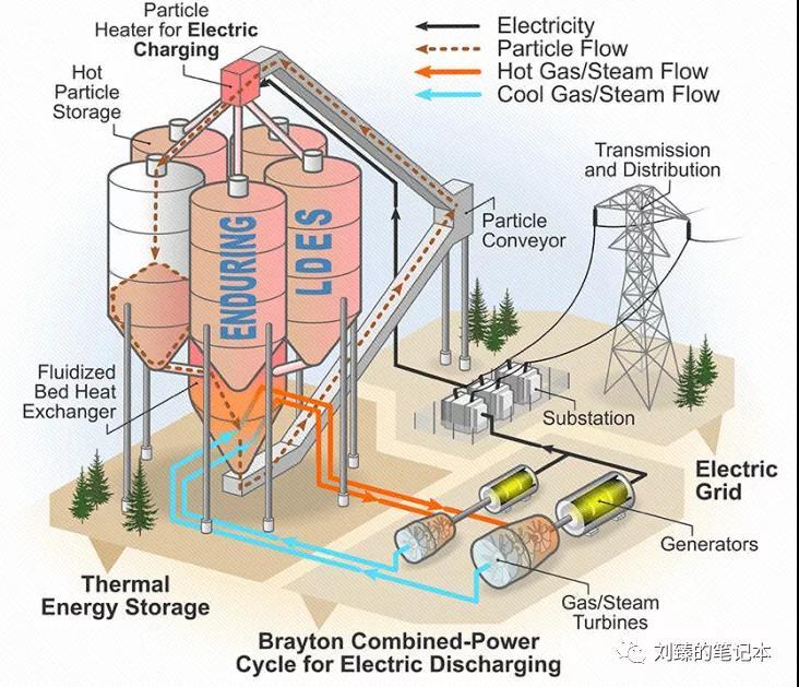 一旦沙子被加熱,它就會(huì)被送入混凝土制成的絕緣筒倉(cāng)進(jìn)行儲(chǔ)存。當(dāng)再次需要儲(chǔ)存的能量時(shí),沙子被送入一個(gè)熱交換器,然后將氣體加壓,為渦輪機(jī)械和旋轉(zhuǎn)發(fā)電機(jī)提供動(dòng)力,再次產(chǎn)生電力。
