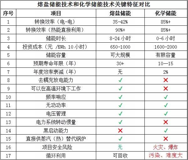表1熔鹽儲能技術和化學儲能技術特征對比