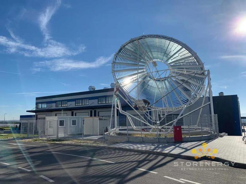 圖:StorEnergy D.O.O.建設(shè)的太陽能聚光器(其接收器由不銹鋼和特殊陶瓷元件制成,可以承受來自聚光系統(tǒng)非常高的溫度,從而將流經(jīng)陶瓷的空氣加熱到900?C。)