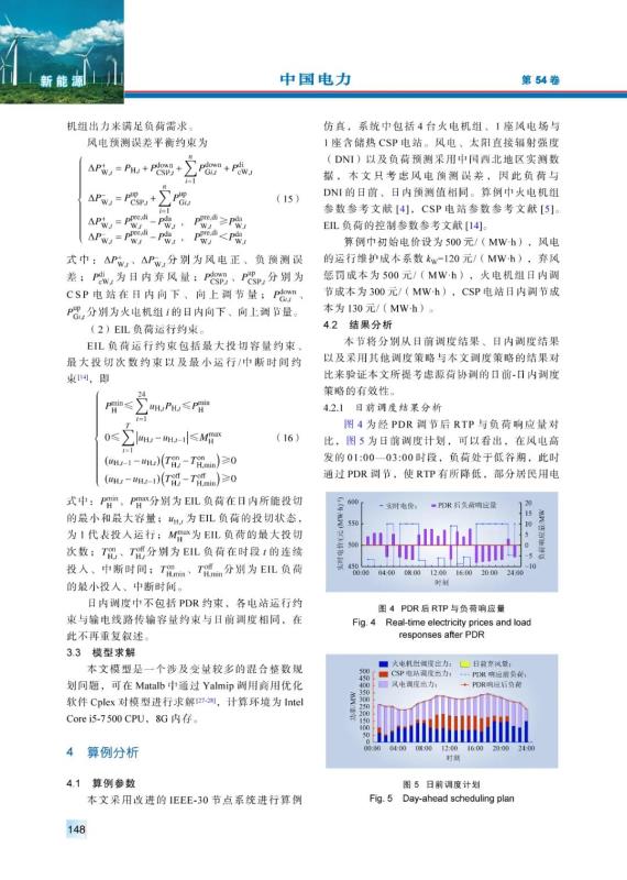 (2)居民用電負荷響應速度慢,可以在日前調(diào)度中通過PDR制定合理RTP來調(diào)節(jié)居民用電計劃;而EIL負荷響應速度快,可以在日內(nèi)調(diào)度中通過投切EIL負荷來促進系統(tǒng)風電消納。通過在日前、日內(nèi)不同時間階段利用負荷側(cè)資源的不同響應速度,能夠有效減少系統(tǒng)棄風量。