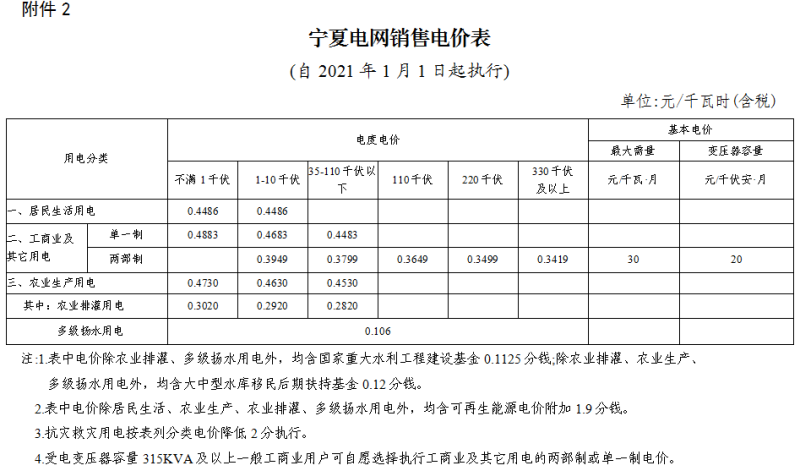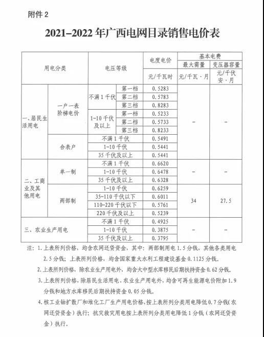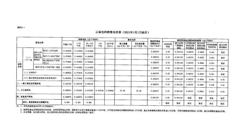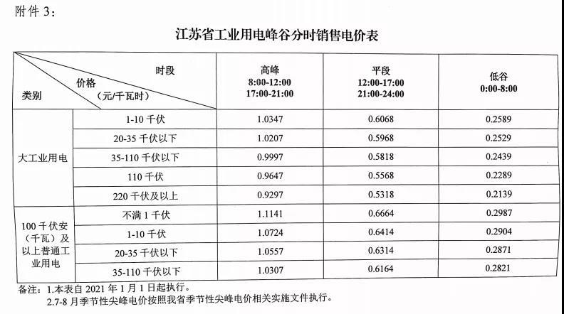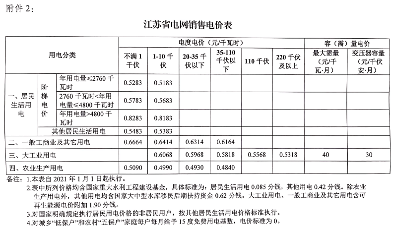 江蘇:根據(jù)新政,從2021年1月1日起,大工業(yè)、一般工商業(yè)平均銷售電價(jià)將較第一監(jiān)管周期分別下降每千瓦時(shí)4.55分和0.46分。大工業(yè)用電1-10千伏、20-35千伏、35-110千伏、110千伏、220千伏及以上的各電壓等級(jí)目錄銷售電價(jià),每千瓦時(shí)分別下調(diào)3.5分、3.9分、4.5分、5.5分和6.5分。