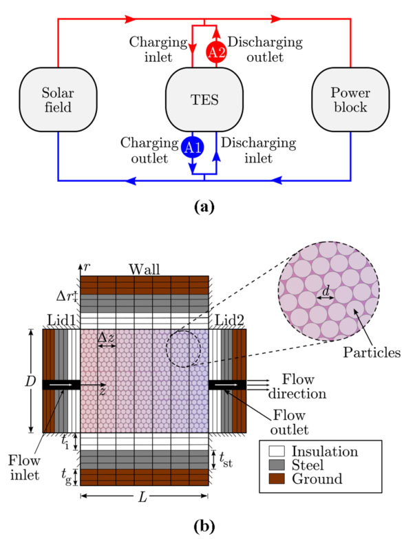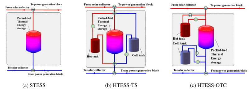 聚光太陽(yáng)能(CSP)與熱能存儲(chǔ)(TES)可以在我們向可持續(xù)能源系統(tǒng)過(guò)渡進(jìn)程中發(fā)揮關(guān)鍵作用,這是由于它可以在相對(duì)低的成本下實(shí)現(xiàn)大規(guī)模的能量存儲(chǔ),并持續(xù)發(fā)電一整天。目前,商業(yè)聚光太陽(yáng)能電站廣泛采用帶熱罐和冷罐的雙罐蓄冷蓄熱技術(shù)。與雙罐蓄冷蓄熱器相比,填充床蓄冷蓄熱成本較低,但效用因數(shù)較低。