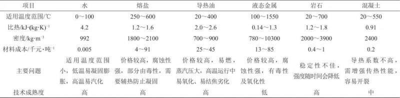 顯熱儲熱技術是利用儲熱材料的熱容量,通過升高或降低材料的溫度而實現(xiàn)熱量儲存或釋放的技術,是研究最早、利用最廣泛、最成熟的技術,具有原理簡單、材料來源豐富、對環(huán)境友好、成本低廉等優(yōu)點,但通常也存在儲能密度低、溫度輸出波動大、自放熱與熱損失大等問題。