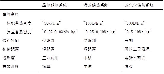 儲(chǔ)熱技術(shù)特性對(duì)比
