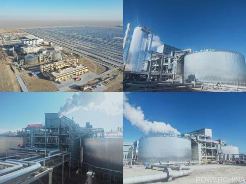 該項目由80個線性菲涅爾太陽能集熱回路,1套儲熱系統(tǒng)(二元熔鹽),1套蒸汽發(fā)生系統(tǒng),1套高溫高壓、一次中間再熱汽輪發(fā)電機系統(tǒng)以及其他輔助設施組成,配置15小時儲熱,可實現(xiàn)24小時連續(xù)發(fā)電,年發(fā)電量約2.14億千瓦時。項目由敦煌大成聚光熱電有限公司作為建設單位牽頭建設、中國電建集團中南勘測設計研究院有限公司承擔EPC總承包工作,甘肅光明電力工程咨詢監(jiān)理有限責任公司負責工程監(jiān)理,主要參建單位包含了動力區(qū)建安的山東電力建設第一工程有限公司、儲熱罐施工的上海藍濱石化設備有限責任公司、集熱島施工的蘭州大成科技股份有限公司以及常規(guī)島設計的西北電力設計院有限公司。