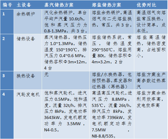 從上表可以看出,在采用相同的余熱資源條件下,熔鹽儲熱方案能夠充分利用高溫余熱的高品位熱能,提高能量利用效率,發(fā)電量能夠達到蒸汽儲熱方案的2倍,具有較大的技術(shù)優(yōu)勢和高效能源利用優(yōu)勢。
