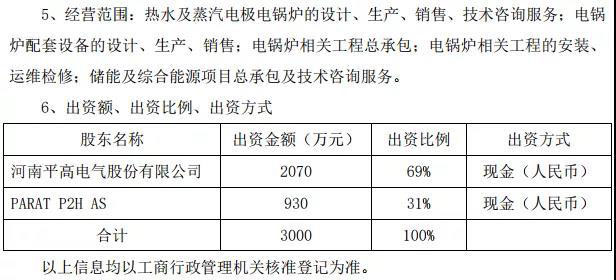 公告顯示,合作企業(yè)PARAT P2H AS有限公司,經(jīng)營范圍包含電極電鍋爐的設(shè)計(jì)、生產(chǎn)、工程總承包,以及儲能、電網(wǎng)調(diào)頻、綜合能源工程總承包及技術(shù)咨詢服務(wù)等。