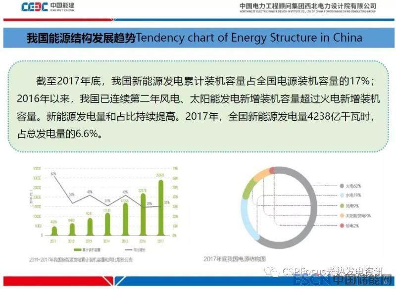 右下角這張圖是2017年我們國家電源結(jié)構(gòu),可以看出來火電占了62%,依然是比重最大的一種能源形式,水電是19%,風電和光伏加在一起是17%,還有一些核電,光熱裝機比較小,可能不太能夠顯出它的重要性。