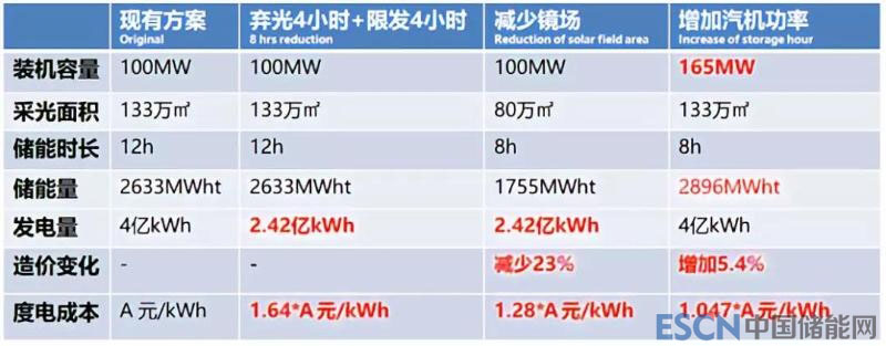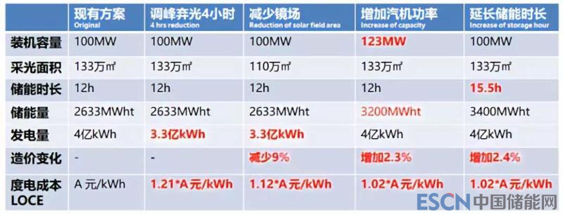(2)系統(tǒng)優(yōu)化:為適應(yīng)于調(diào)峰需求,系統(tǒng)設(shè)計(jì)需調(diào)整:同等采光面積下(同等土地面積),增加儲(chǔ)能時(shí)長(zhǎng),或:同等采光面積下,增加汽輪機(jī)額定功率。