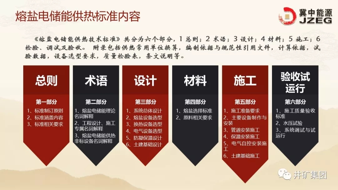 北京工業(yè)大學(xué)吳玉庭教授詳細(xì)介紹了標(biāo)準(zhǔn)編制單位、標(biāo)準(zhǔn)編制背景、標(biāo)準(zhǔn)編制過程、熔鹽電儲能專業(yè)術(shù)語體系、工藝設(shè)計要求、非標(biāo)設(shè)備制作要求以及施工、驗收、試運行等標(biāo)準(zhǔn)內(nèi)容。在認(rèn)真聽取標(biāo)準(zhǔn)編制單位的匯報后,評審專家組對標(biāo)準(zhǔn)文本進行了逐條審查,在文本規(guī)范、專業(yè)術(shù)語、技術(shù)細(xì)節(jié)、工程運行效果等方面進行了深入的討論,并提出了具體的修改意見。最后,評審專家組給出了評審意見:冀中能源企業(yè)標(biāo)準(zhǔn)《熔鹽電儲能供熱技術(shù)規(guī)范》送審材料齊全,系統(tǒng)總結(jié)了冀中能源井礦集團和北京工業(yè)大學(xué)在熔鹽儲能領(lǐng)域的理論研究、工程實踐經(jīng)驗,規(guī)范內(nèi)容對于熔鹽電儲能供熱應(yīng)用推廣具有重要作用,是國內(nèi)率先開展的熔鹽儲能供熱系統(tǒng)標(biāo)準(zhǔn)化工作,具有前瞻性、先進性和適用性,對國內(nèi)物理儲能供熱行業(yè)具有積極的指導(dǎo)和參考作用。專家一致同意該規(guī)范通過審查,建議根據(jù)專家意見修改完善后頒布實施,并希望冀中能源井礦集團盡快以企業(yè)標(biāo)準(zhǔn)基礎(chǔ)申報行業(yè)標(biāo)準(zhǔn)。