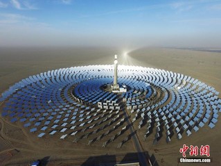冬日航拍鏡頭下的亞洲首座全天候熔鹽塔式光熱電站。(楊艷敏/中國新聞網(wǎng))