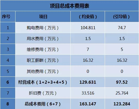 供熱項(xiàng)目的固定資產(chǎn)折舊期20年,殘值率5%,綜合折舊率則為4.75%,項(xiàng)目總成本費(fèi)用見下表5。