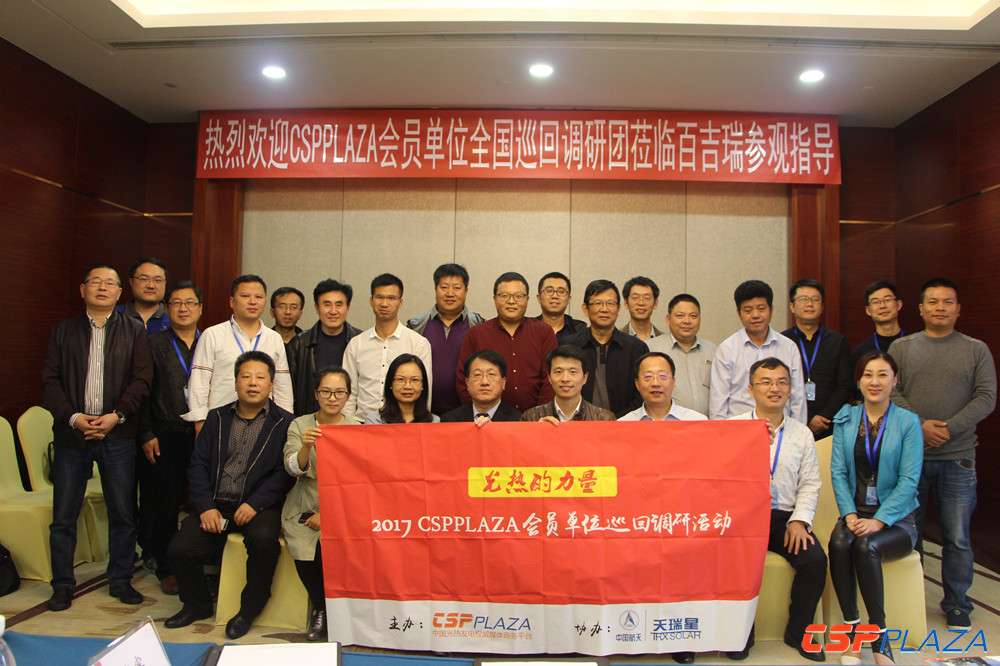 來自江蘇鑫晨光熱技術(shù)有限公司、北京兆陽光熱技術(shù)有限公司、北京青域誠和投資管理有限公司、北京中熱能源科技有限公司、沃利帕森集團埃維森公司、江陰市華方新能源高科設備有限公司、源和電站股份有限公司、沈陽市中色測溫儀表材料研究所有限公司、AGC集團旭硝子特種玻璃(大連)有限公司、江蘇市飛躍機泵集團有限公司、北京佳潔能新節(jié)能技術(shù)有限公司、浙江久立特材科技股份有限公司、北京市閥門總廠股份有限公司、山東北辰機電設備股份有限公司等多家CSPPLAZA的會員單位代表隨團參與了本次調(diào)研活動。