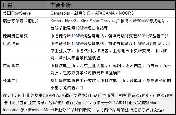 表:國內(nèi)外相關(guān)熔鹽泵供應(yīng)商的主要業(yè)績