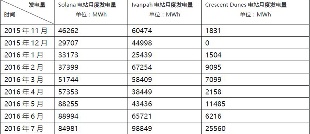 原標(biāo)題:美國三大光熱電站近9個月的發(fā)電表現(xiàn)對比