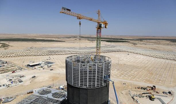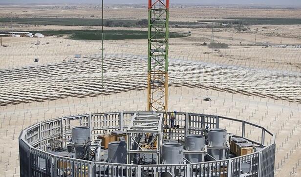 中國(guó)儲(chǔ)能網(wǎng)訊:裝機(jī)121MW的Ashalim1塔式光熱電站位于以色列在內(nèi)蓋夫(Negev)沙漠,這座塔式光熱電站總占地面積為3.15平方公里,場(chǎng)地中央矗立著Ashalim塔,高240米——是世界上最高的集熱塔,塔底將安裝約5.5萬(wàn)面鏡子,占地面積約400個(gè)足球場(chǎng)大小,這一浩大的工程構(gòu)成了沙漠中的一幅奇景。