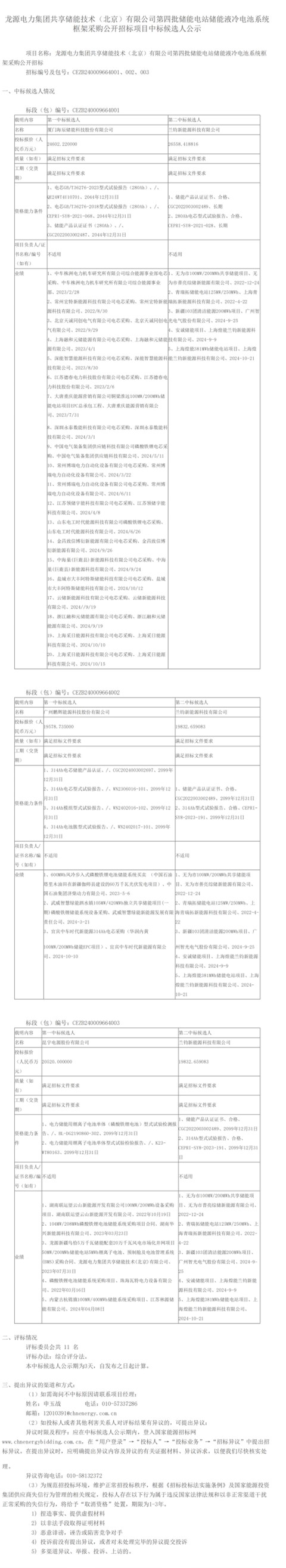 中國儲能網(wǎng)訊:12月9日,龍?jiān)措娏瘓F(tuán)共享儲能技術(shù)(北京)有限公司第四批儲能電站儲能液冷電池系統(tǒng)框架采購中標(biāo)候選人公示。