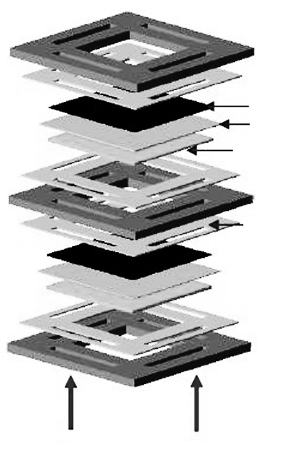 為了產(chǎn)生足夠的電量帶動某一電器,科學(xué)家們經(jīng)常將許多固體氧化電池串聯(lián)在一起。每個電池的構(gòu)造都相同:一端為空氣,一端為燃料??諝庵械难鯕庋趸剂袭a(chǎn)生電子。在這些相互聯(lián)系的固體氧化電池中,最重要的是將獨個的電池隔離起來,這樣不同電池里的空氣及燃料就不會泄露或者混合。而如果出現(xiàn)泄露或者混合則有可能導(dǎo)致電池效能下降甚至內(nèi)燃。要實現(xiàn)不同固體氧化電池的完全隔離需要先進(jìn)的密封技術(shù)。