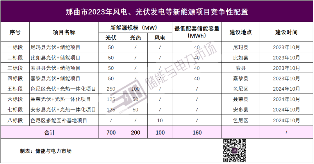 那曲市:光伏700MW,光熱200MW,風(fēng)電100MW,最低配置儲(chǔ)能容量160MWh。