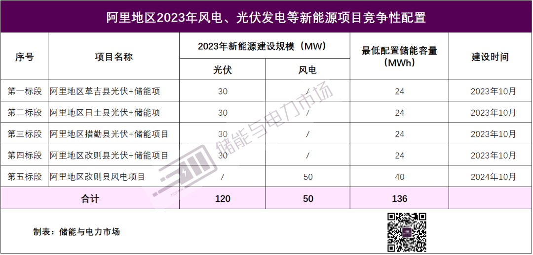 中國儲(chǔ)能網(wǎng)訊:近日,西藏日喀則市和阿里地區(qū)發(fā)布2023年風(fēng)電、光伏發(fā)電等新能源項(xiàng)目競爭性配置公告。項(xiàng)目總規(guī)模光伏500MW、風(fēng)電300MW,最低配置儲(chǔ)能容量440MWh。