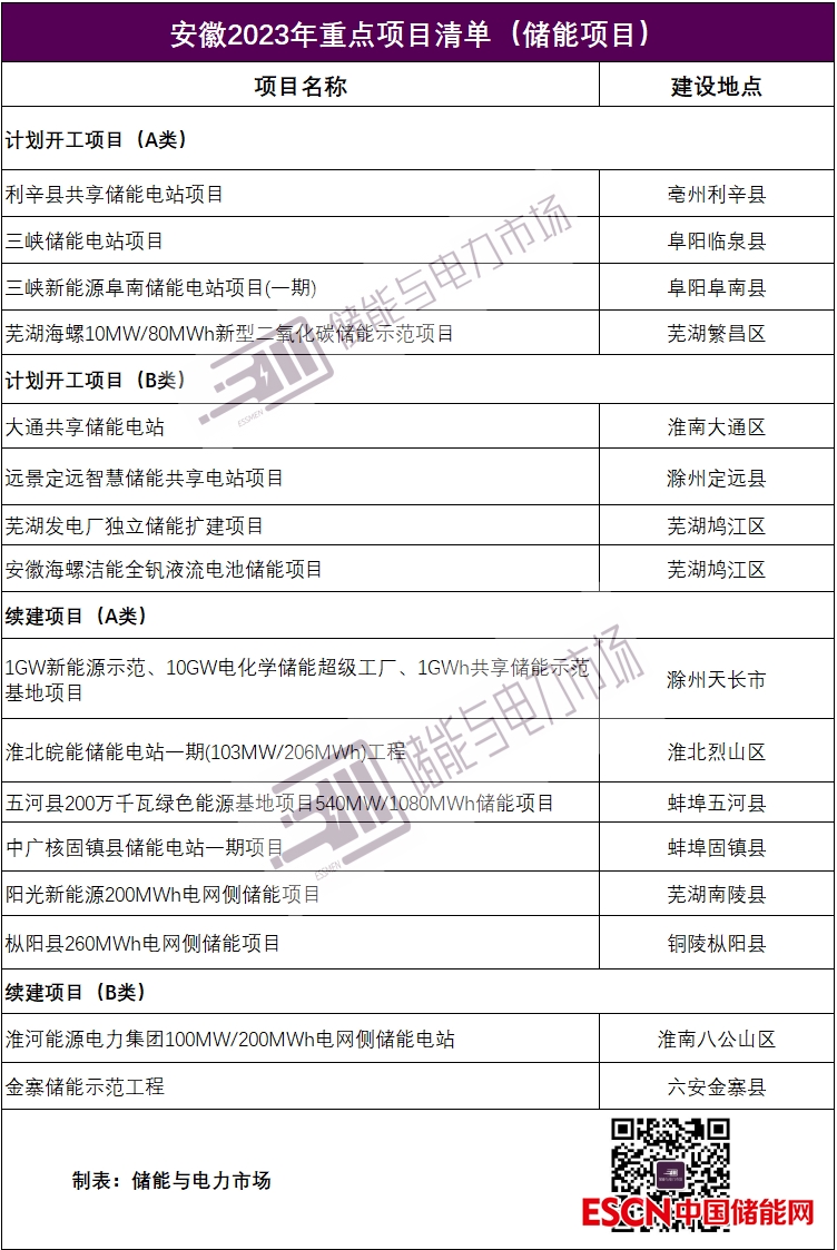 中國儲能網(wǎng)訊:近日,安徽省政府發(fā)布了2023年第一批省重點項目清單。其中,在2023年計劃開工的儲能相關(guān)項目有20個,續(xù)建的有17個。