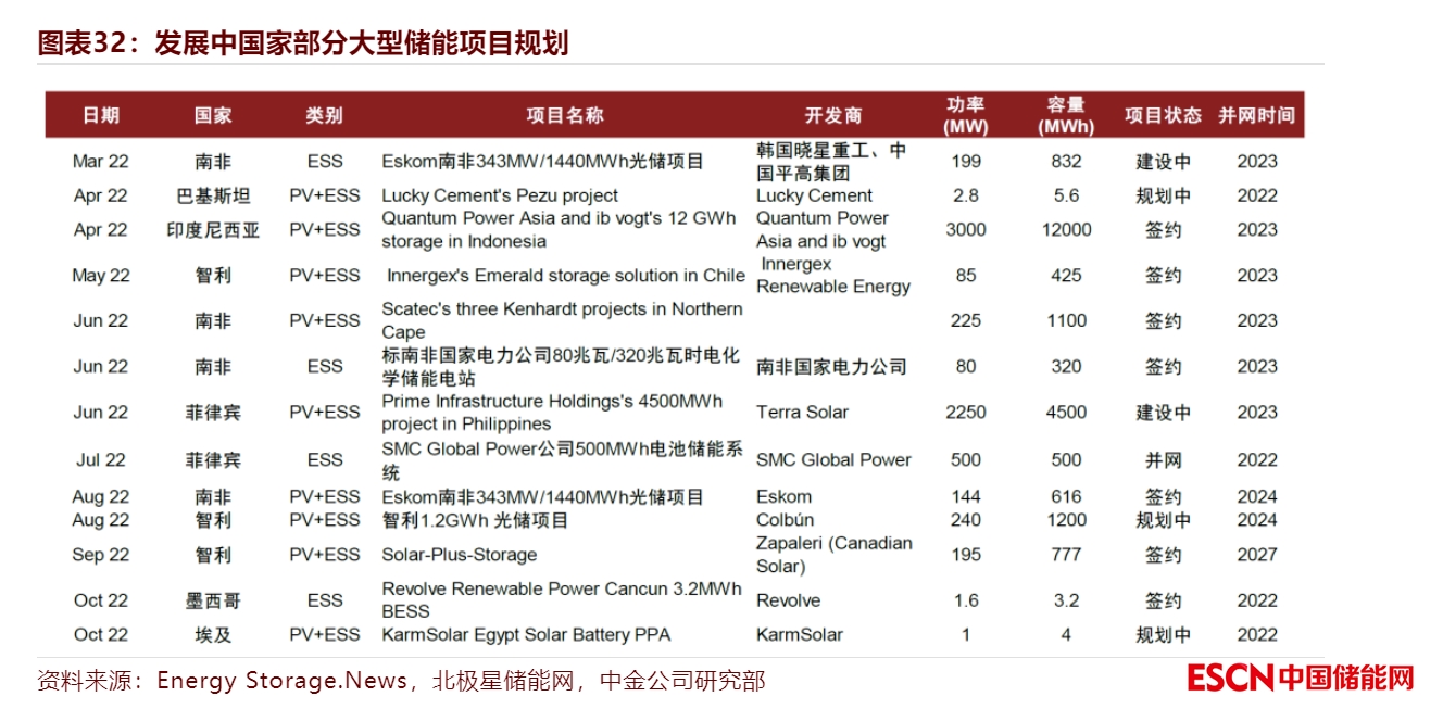 2022年以來,我們統(tǒng)計發(fā)展中國家陸續(xù)落地眾多大型表前光儲項目。