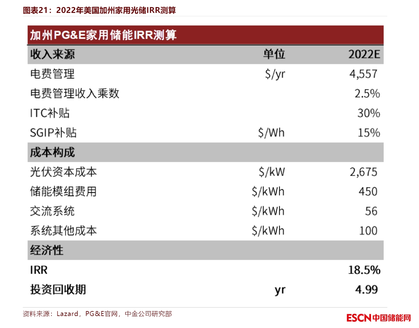 ? 加州:分時電價及政策補貼激勵表后裝機??紤]到ITC和SGIP,我們測算加州家庭光伏配儲IRR達(dá)18.5%、經(jīng)濟(jì)性較好。