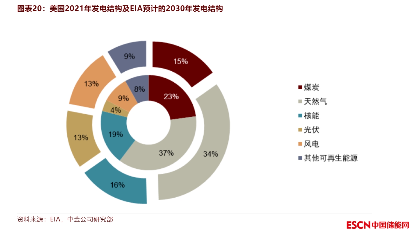 組件供給增強,刺激光伏裝機、驅(qū)動儲能配套。2022年6月6日美國總統(tǒng)令給予東南亞進(jìn)口組件兩年零關(guān)稅政策,10月美國正式暫停對東南亞四國光伏電池和組件征收雙反關(guān)稅的調(diào)查,12月2日晶科能源被暫扣的光伏組件獲美國海關(guān)首批放行,我們認(rèn)為這些意味著美國市場組件供給能力逐步增加,有望刺激下游需求、驅(qū)動美國光伏裝機,根據(jù)中金風(fēng)光公用環(huán)保組預(yù)測,2023年美國光伏裝機反彈,集中式/分布式裝機規(guī)模達(dá)20/14GW,光伏配套有望帶動儲能增長。