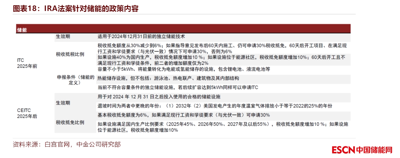 我們認(rèn)為IRA法案將獨立儲能納入ITC范疇,并且提高稅收抵免額度(從26%提高到30%,甚至最高可達(dá)50%)[2],將會改善儲能投資經(jīng)濟(jì)性、激勵光伏配儲及獨立儲能裝機。短期看,表前市場加州、德州等局部地區(qū)風(fēng)光發(fā)電比例較高、儲能放量趨勢明顯、儲備項目較多,表后夏威夷高電價驅(qū)動自發(fā)電、凈計量機制廢除后儲能崛起,加州受益于分時電價和補貼政策激勵、儲能經(jīng)濟(jì)較好。