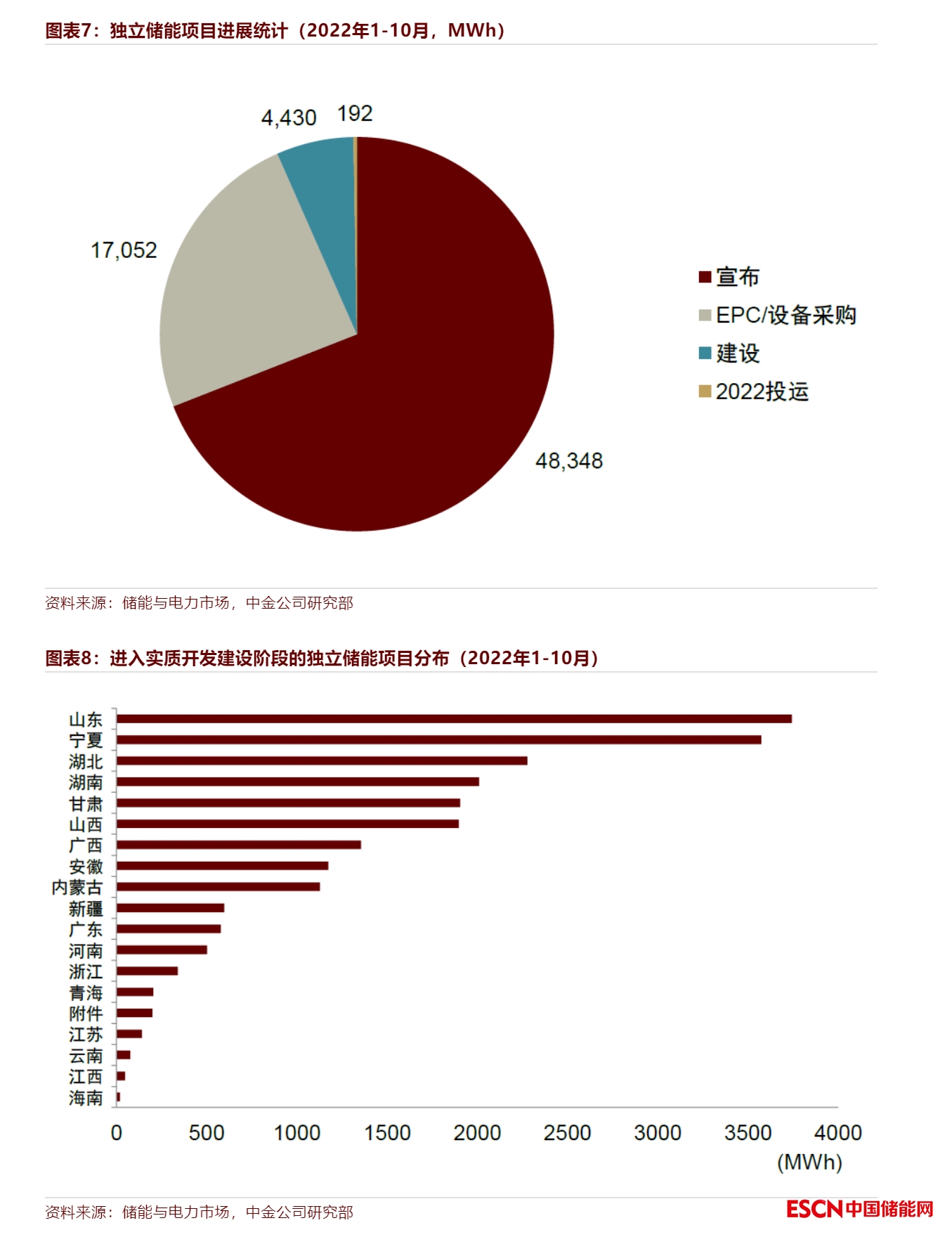 根據(jù)儲能與電力市場數(shù)據(jù)統(tǒng)計,2022年1-10月已啟動獨立儲能項目數(shù)量達(dá)231個,總規(guī)模34GW/70GWh,已進(jìn)入EPC/設(shè)備招標(biāo)、項目建設(shè)和投運等階段的項目達(dá)110個,規(guī)模約10.9GW/21.7GWh。