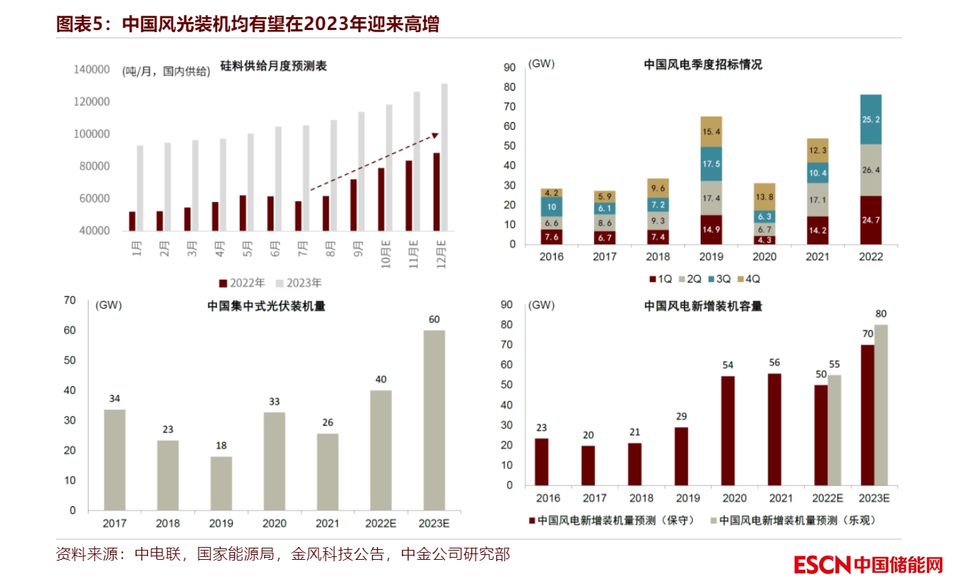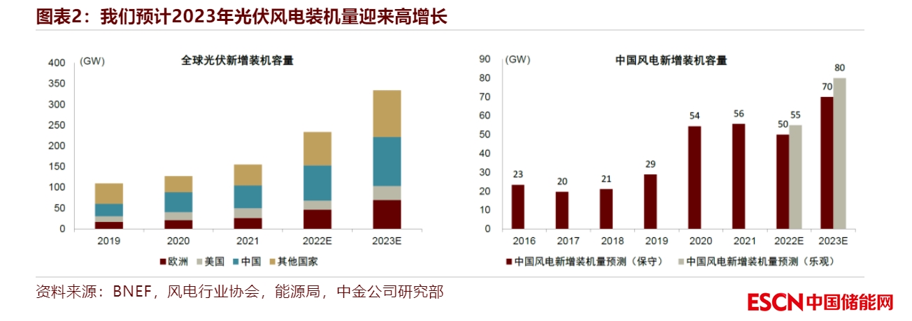 ? 風(fēng)電:行業(yè)招標(biāo)創(chuàng)歷史新高,預(yù)計中國2023年行業(yè)裝機量將達(dá)到70-80GW,同比增長約30%-40%。