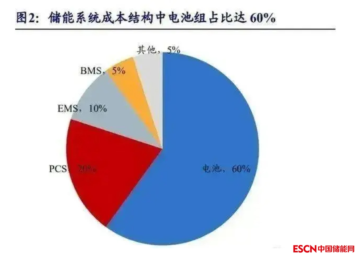 據(jù)36氪報道,一套儲能系統(tǒng)的初始投資成本中,電池占比約60%,變流器占比約20%,BMS(電池管理系統(tǒng))和EMS(能量管理系統(tǒng))合計占比約15%。巧的是,動力電池在新能源汽車的成本占比中,也將近六成。