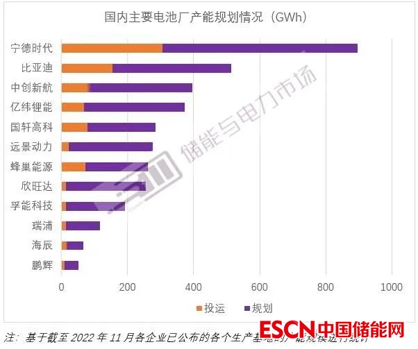 根據(jù)儲能與電力市場的統(tǒng)計,國內(nèi)僅12家代表性電池企業(yè)已公布實施的工廠和產(chǎn)能就已經(jīng)超過3600GWh(3.6TWh),考慮到行業(yè)內(nèi)還有大量其他廠商也并未示弱,目前國內(nèi)電池企業(yè)總規(guī)劃產(chǎn)能超過5TWh應該不在話下。此外,國軒高科、中創(chuàng)新航、蜂巢能源等企業(yè)都已提出了到2025年達到500或600GWh產(chǎn)能的宏偉目標,這也意味著還有大量新規(guī)劃產(chǎn)能正在路上。