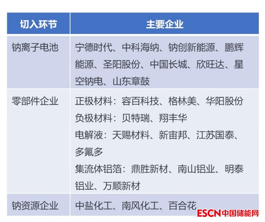 鈉離子電池產(chǎn)業(yè)鏈主要企業(yè)